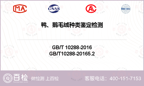百檢網(wǎng)匯集眾多CNAS、CMA、CAL等資質(zhì)的檢測機(jī)構(gòu)遍布全國,可為您提供鴨、鵝毛絨種類鑒定測試服務(wù),實(shí)驗(yàn)室就近分配。具體請(qǐng)咨詢?cè)诰€客服。