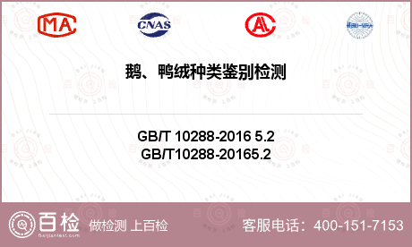 百檢網(wǎng)匯集眾多CNAS、CMA、CAL等資質(zhì)的檢測(cè)機(jī)構(gòu)遍布全國(guó),可為您提供鵝、鴨絨種類(lèi)鑒別測(cè)試服務(wù),實(shí)驗(yàn)室就近分配。具體請(qǐng)咨詢?cè)诰€客服。