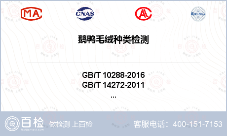 百檢網(wǎng)匯集眾多CNAS、CMA、CAL等資質(zhì)的檢測機構(gòu)遍布全國,可為您提供鵝鴨毛絨種類測試服務(wù),實驗室就近分配。具體請咨詢在線客服。