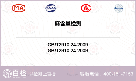 百檢網(wǎng)匯集眾多CNAS、CMA、CAL等資質(zhì)的檢測機構(gòu)遍布全國,可為您提供麻含量測試服務(wù),實驗室就近分配。具體請咨詢在線客服。