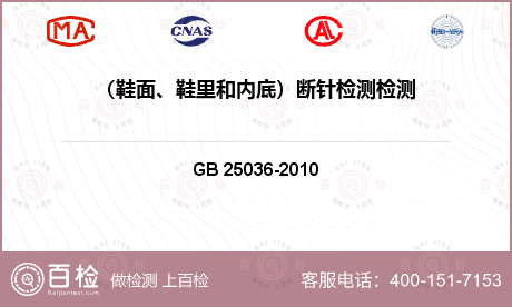 溫馨提示:以上關于《(鞋面、鞋里和內(nèi)底)斷針測試測試》內(nèi)容僅為部分列舉供參考使用,百檢網(wǎng)匯集眾多CNAS、CMA、CAL等資質(zhì)的檢測機構(gòu)遍布全國,更多檢測需求請咨詢客服。