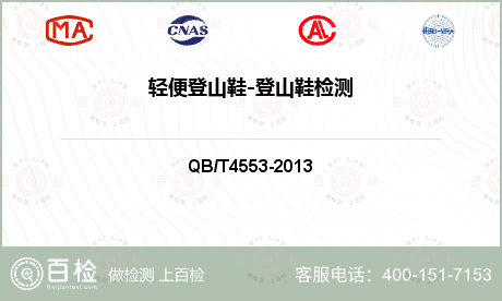 溫馨提示:以上關(guān)于《輕便登山鞋檢測(cè)》內(nèi)容僅為部分列舉供參考使用,百檢網(wǎng)匯集眾多CNAS、CMA、CAL等資質(zhì)的檢測(cè)機(jī)構(gòu)遍布全國(guó),更多檢測(cè)需求請(qǐng)咨詢(xún)客服。