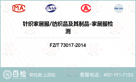 | 2 | 針織家居服/FZ/T 73017-2014 5.1.2.7 | 針織家居服/紡織品及其制品 | 尺寸變化率 |