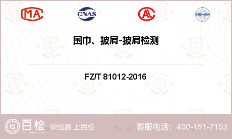溫馨提示:以上關于《圍巾、披肩檢測》內容僅為部分列舉供參考使用,百檢網匯集眾多CNAS、CMA、CAL等資質的檢測機構遍布全國,更多檢測需求請咨詢客服。