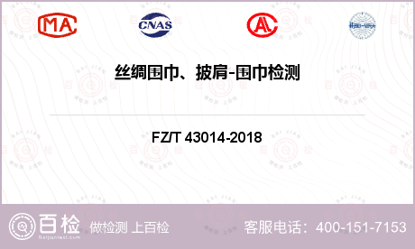 | 5 | 絲綢圍巾、披肩 FZ/T 43014-2018 5.1.6 | 絲綢圍巾、披肩 | 水洗尺寸變化率 |