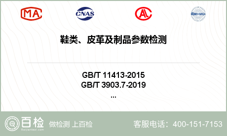 溫馨提示:以上關(guān)于《鞋類皮革及制品參數(shù)檢測(cè)》內(nèi)容僅為部分列舉供參考使用,百檢網(wǎng)匯集眾多CNAS、CMA、CAL等資質(zhì)的檢測(cè)機(jī)構(gòu)遍布全國,更多檢測(cè)需求請(qǐng)咨詢客服。