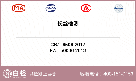 溫馨提示:以上關(guān)于《長絲檢測》內(nèi)容僅為部分列舉供參考使用,百檢網(wǎng)匯集眾多CNAS、CMA、CAL等資質(zhì)的檢測機構(gòu)遍布全國,更多檢測需求請咨詢客服。