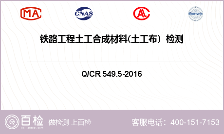 溫馨提示:以上關(guān)于《鐵路工程土工合成材料(土工布)檢測》內(nèi)容僅為部分列舉供參考使用,百檢網(wǎng)匯集眾多CNAS、CMA、CAL等資質(zhì)的檢測機構(gòu)遍布全國,更多檢測需求請咨詢客服。